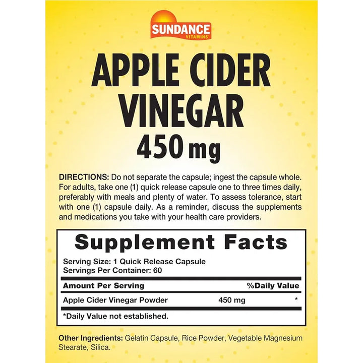 - Fácil consumo diario: Las cápsulas de liberación rápida te proporcionan 450 mg de vinagre de sidra de manzana en polvo, optimizando su absorción en tu organismo.