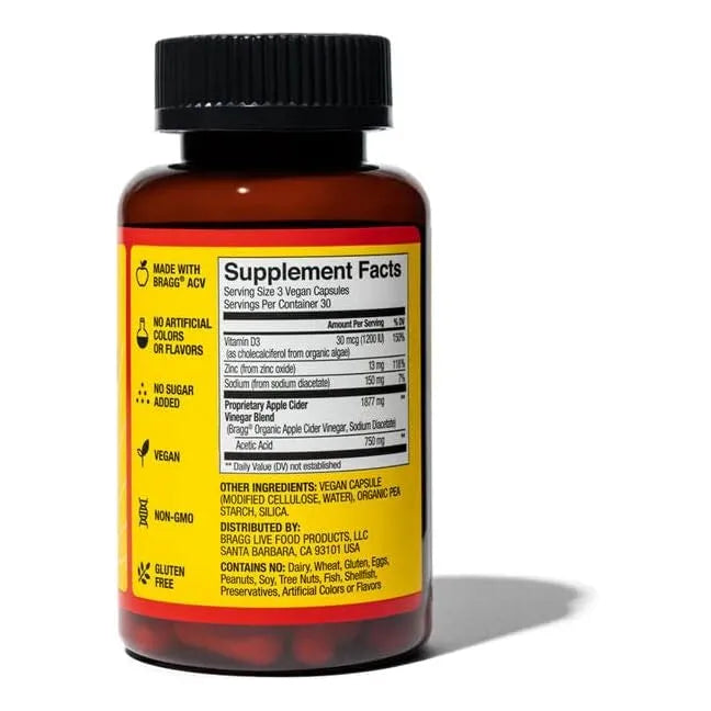 Cápsulas De Vinagre De Sidra De Manzana Bragg Con Vitamina D3 Y Zinc 750 Mg