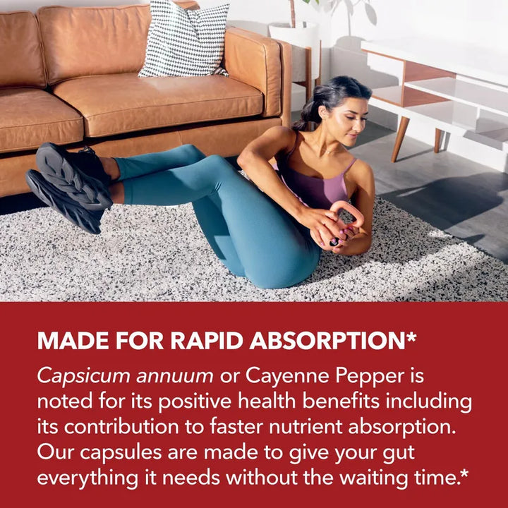 Si alguna vez te has sentido hinchado o incómodo después de las comidas, sabrás lo importante que es mantener un equilibrio saludable en tu digestión. Con 500 mg de ACV y 20 mg de capsicum annuum por cápsula, estás recibiendo un potente apoyo a tu sistema. 💪