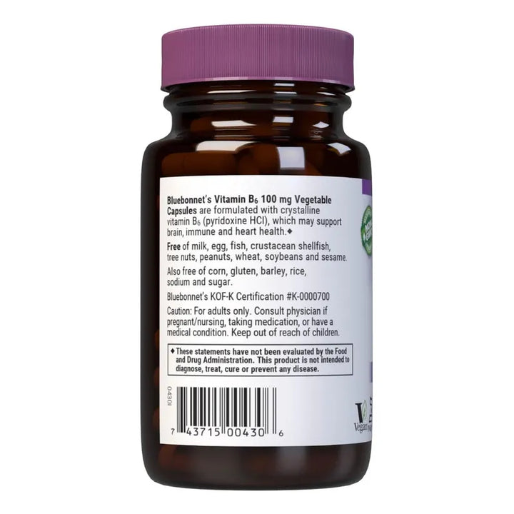 Sabemos que cuidar tu salud debe ser una prioridad, y estas cápsulas hacen que sea más fácil. Cada cápsula contiene 100 mg de vitamina B6, esencial para el funcionamiento óptimo de tu corazón y sistema nervioso. Además, están formuladas para ser amigables con multitud de dietas y necesidades alimenticias. 💪