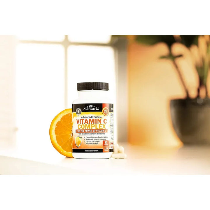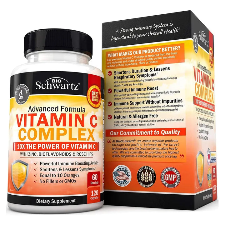 Nuestras cápsulas combinan una mezcla única de ingredientes naturales que aportan diez veces el poder de la vitamina C, equivalente a consumir 10 naranjas en una sola dosis. Con el respaldo científico de BioSchwartz, estás eligiendo un producto formulado por profesionales de la salud para garantizar la máxima efectividad y pureza.