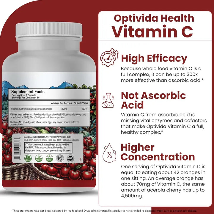 ¿Por qué conformarte con menos cuando la vitamina C de acerola orgánica ofrece 100 veces más poder antioxidante que las naranjas y limones convencionales? Este suplemento no solo mejora tu salud, sino que lo hace de manera natural y efectiva.