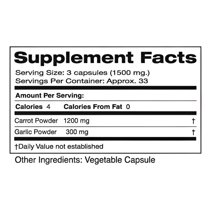 Este potente suplemento combina las propiedades antioxidantes de las zanahorias con los beneficios dietéticos del ajo. Las cápsulas concentradas están diseñadas para proporcionarte la vitalidad que necesitas cada día. Imagina una sencilla cápsula que ofrece los nutrientes necesarios para tu organismo.