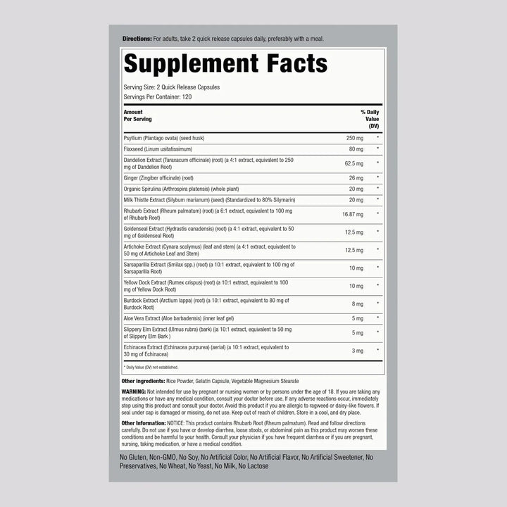 Cápsulas Detox 240 Píldoras Complejo Herbáceo Fórmula Magra Limpieza Profunda