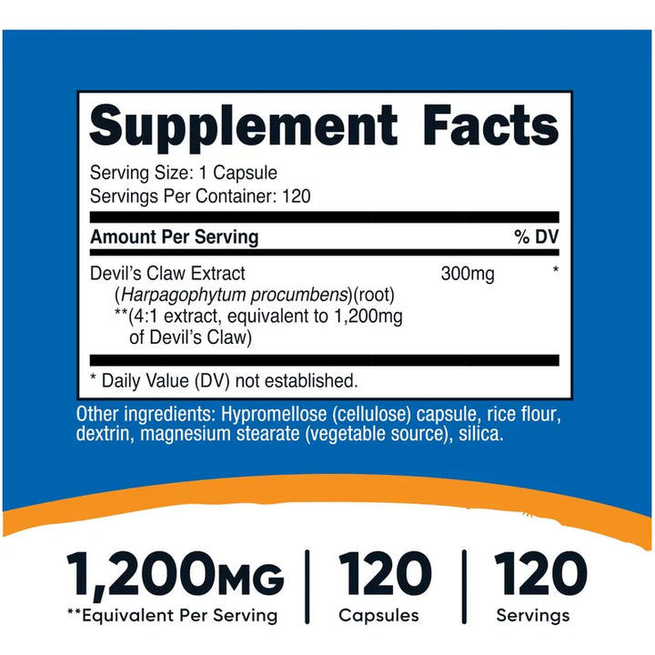 Capsulas Devil Claw 1200 Mg 120 Unidades Sin Gluten Ni OMG