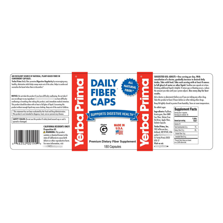 Capsulas Diarias De Fibra 180 Unidades Limpieza Colon Salud Intestinal