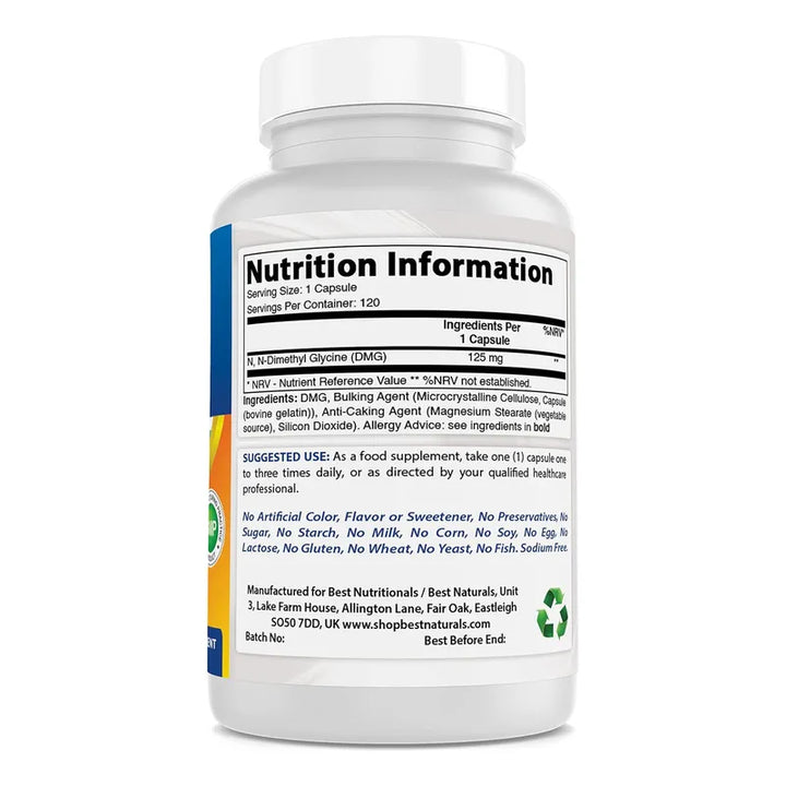 El DMG (N,N-Dimetilglicina) es conocido por su capacidad para mejorar la eficiencia del oxígeno en el cuerpo y apoyar el metabolismo celular. Al tomar nuestras cápsulas, puedes experimentar mejoras significativas en tu energía y bienestar general.