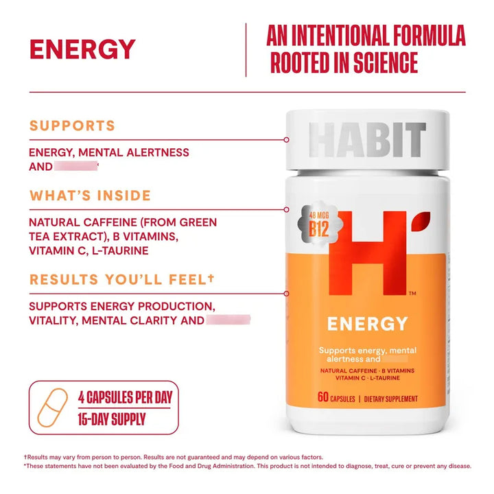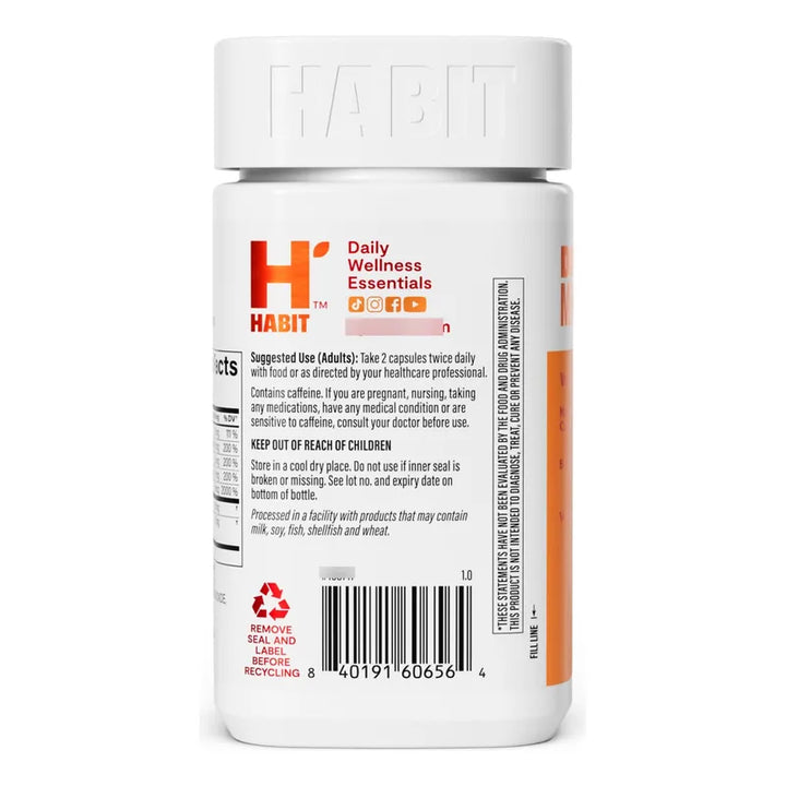 Capsulas Energeticas Habit 120 Caps Nuevo Aspecto Cafeina Natural Veganas