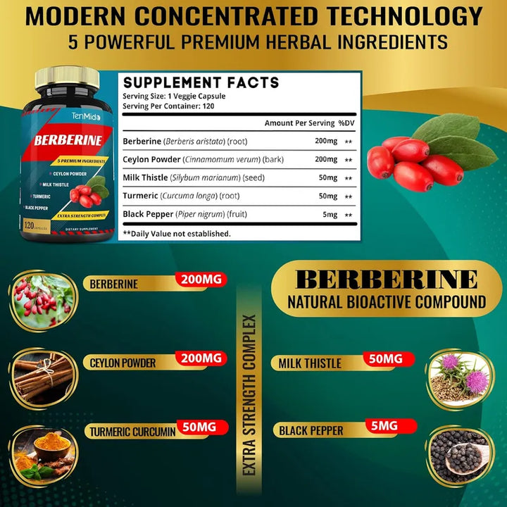 El poder de la berberina, combinado con los antioxidantes de la cúrcuma, la protección del hígado que ofrece el cardo mariano y la mejora en la absorción gracias a la pimienta negra, hace de este suplemento una herramienta completa para tu bienestar.