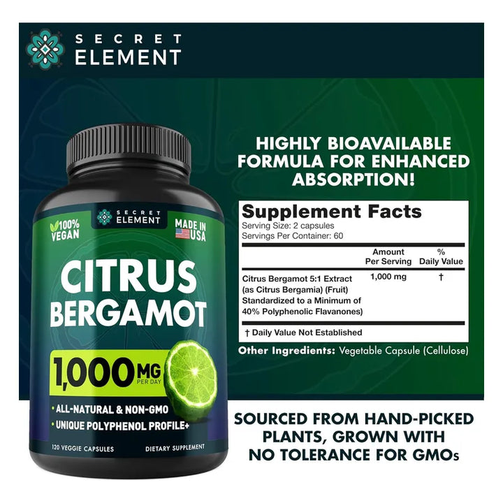 Capsulas Extracto De Bergamota Citrica 1000 Mg Para Corazon Saludable