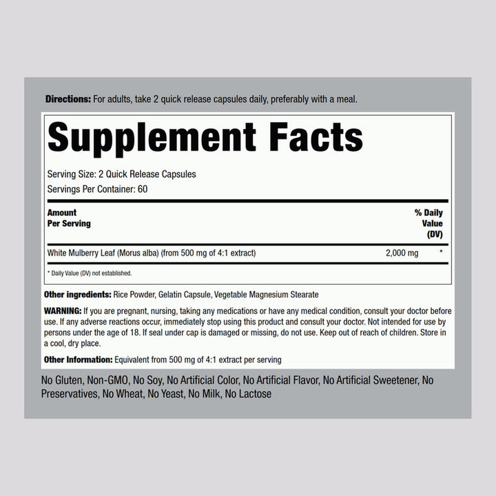 Capsulas Extracto De Hoja Morera 2000 Mg 120 Unidades Sin OMG Sin Gluten