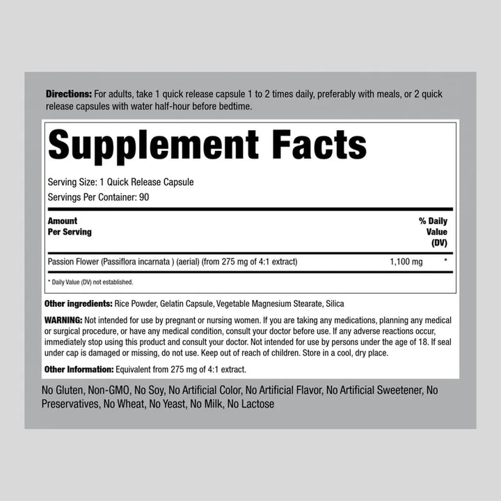 Capsulas Extracto Flor De La Pasion 1100 Mg 90 Unidades