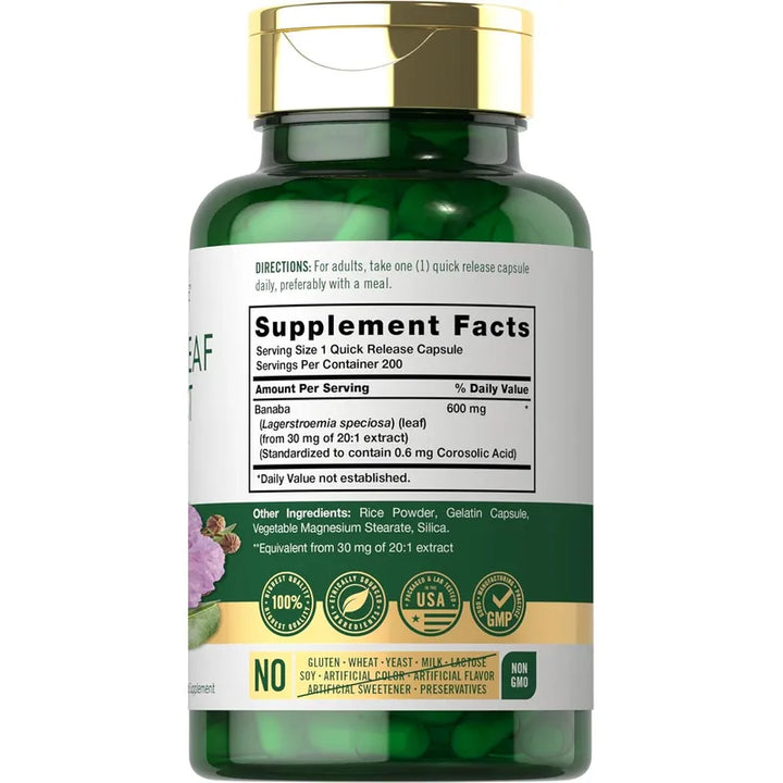 Capsulas Extracto Hoja Banaba 600 Mg 200 Unidades Naturales Saludable