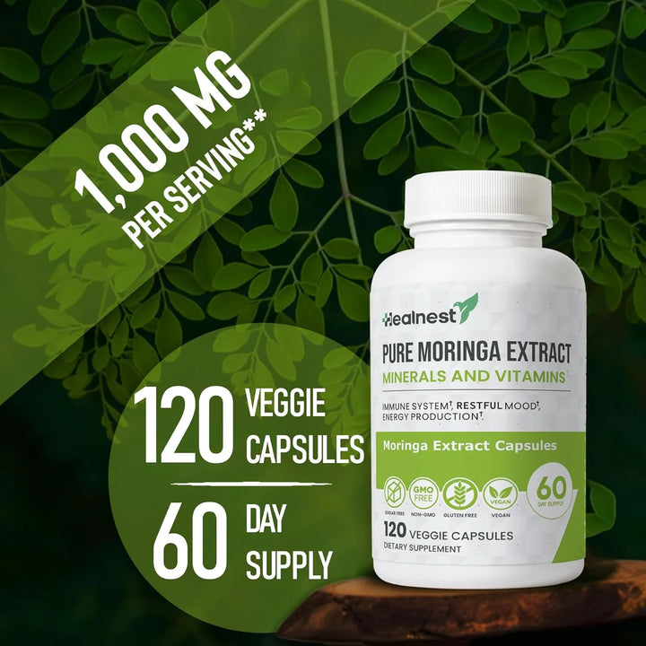 ¿Sientes que tu energía no es la misma de antes? ¿Te cuesta mantenerte enfocado y de buen humor durante el día? La solución está en la naturaleza. Descubre las Cápsulas de Extracto de Moringa Pura 20:1, un suplemento diseñado para devolverle a tu cuerpo la vitalidad que merece. Con una fórmula concentrada, cada cápsula es un impulso de nutrientes esenciales que tu cuerpo agradecerá.