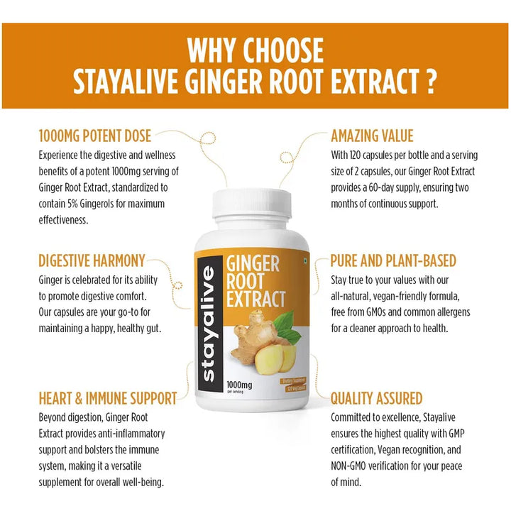 Capsulas Extracto Puro Raiz Jengibre 10000 Mg Stayalive Apoyo Salud Total