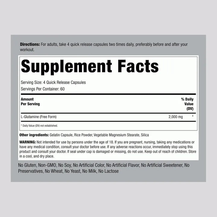 Capsulas Glutamina 2000 Mg 240 Unidades Piping Rock Aminoacido Libre