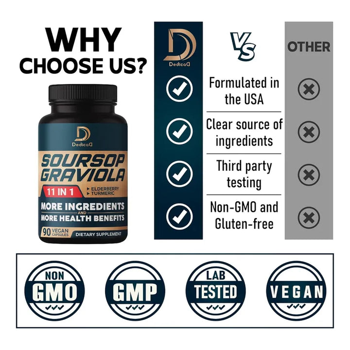 ¿Por qué elegir nuestras Cápsulas de Graviola? Porque no solo son un producto; son el resultado de años de dedicación y estudio para garantizar que cada dosis sea una fuente de vitalidad y bienestar.