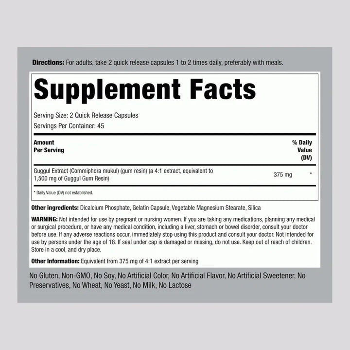 Capsulas Guggul 1500 Mg 90 Unidades Extracto Nat