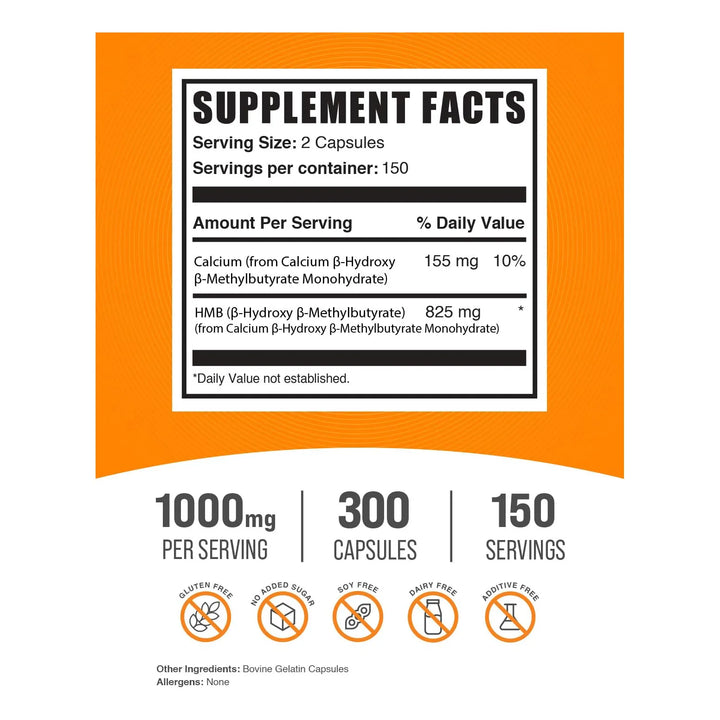 Cápsulas HMB 1000 Mg Beta-Hidroxi Beta-Metilbutirato 300 Unidades Suplemento Fitness