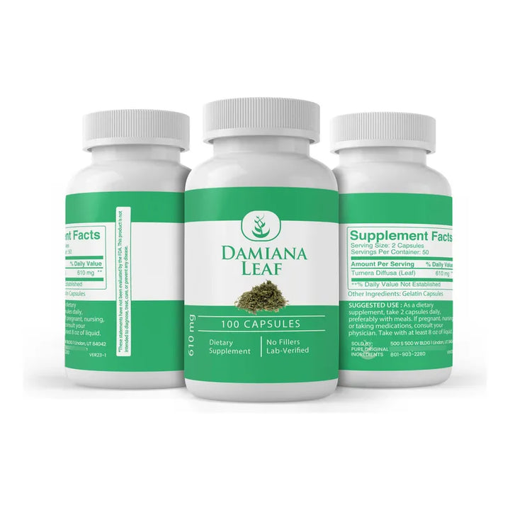 Capsulas Hoja De Damiana 100 Unidades Ingredientes Puros Suplemento Natural