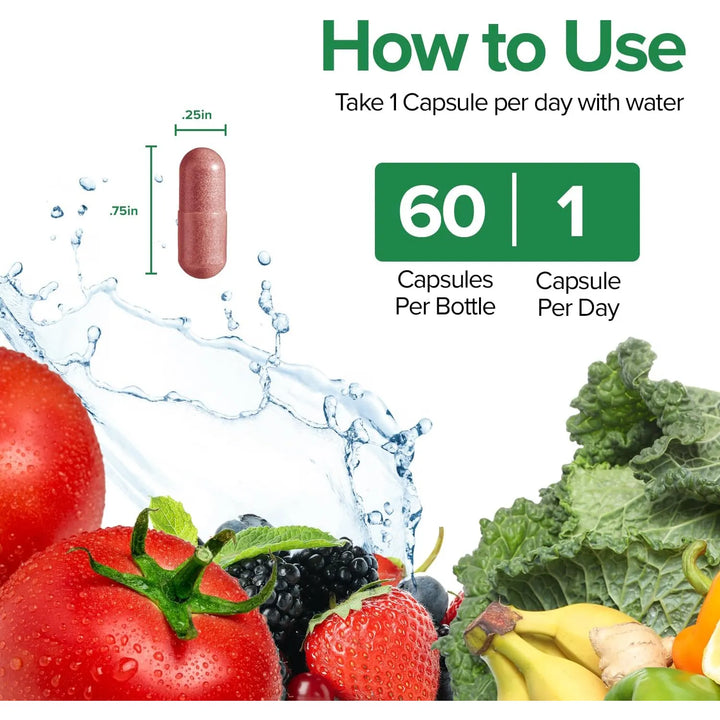 - Fácil de Tomar: Dos cápsulas al día son todo lo que necesitas para obtener los beneficios de 25 superalimentos en una sola dosis. 💊