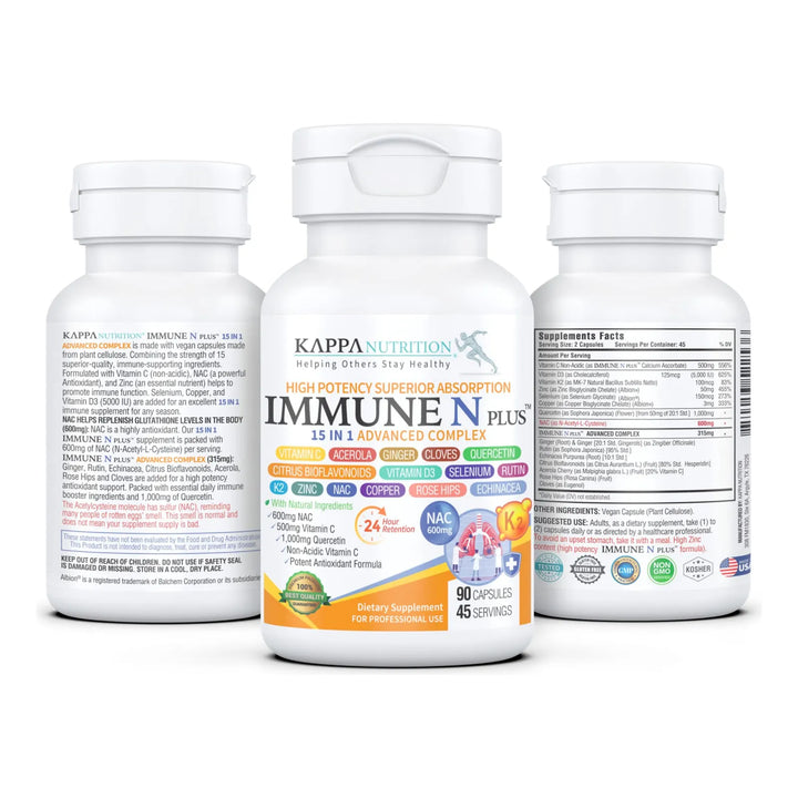 Cápsulas Inmunológicas NAC 600mg Quercetina 1000mg Vitamina C 500mg Zinc 50mg 90 Unidades