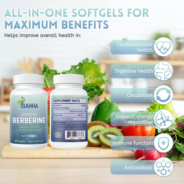 Cápsulas Liposomales Berberina 1500mg Sahha Absorción Superior Efecto Antioxidante