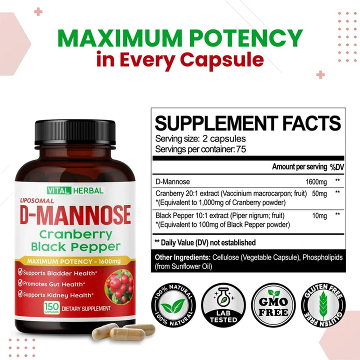 Cápsulas Liposomales De D-manosa Con Arándano Y Pimienta Negra Salud Holística 150 Cápsulas