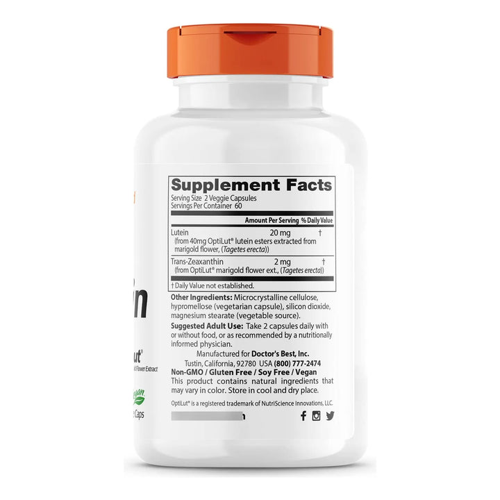 Imagina poder proteger tus ojos de forma natural, manteniendo una visión clara y saludable incluso después de largas horas frente a la pantalla. Con las Cápsulas de Luteína Ésteres 20 mg de Doctor's Best, eso es posible. Este suplemento está diseñado para quienes buscan cuidar su visión con ingredientes 100% naturales, sin comprometer su estilo de vida vegano o libre de gluten.