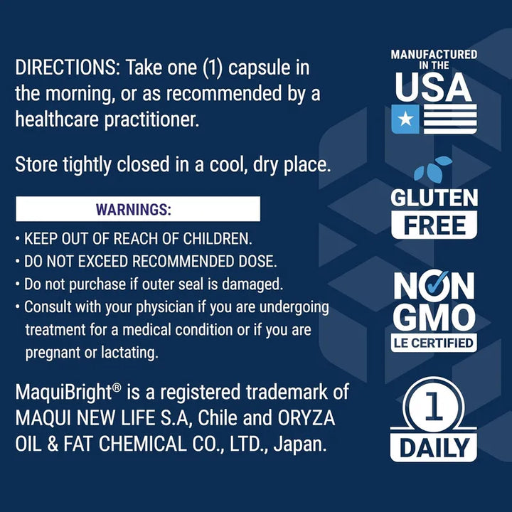Con extracto de bayas de Maqui, este suplemento se ha formulado tomando como referencia investigaciones avanzadas que aseguran que con cada cápsula, obtienes la misma pureza y potencia empleada en estudios clínicos. Esto no solo significa eficacia, sino también seguridad en cada dosis. Puedes confiar en que tu salud ocular está respaldada por ciencia sólida.