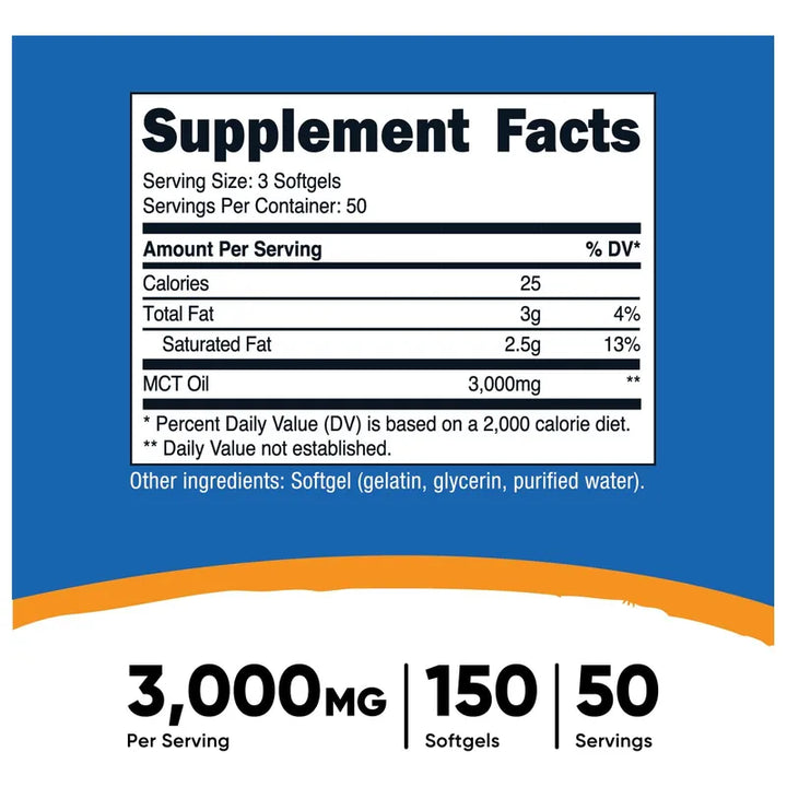 Capsulas Mct 1000 Mg 150 Unidades Facil Energía Para Dieta Cetogénica