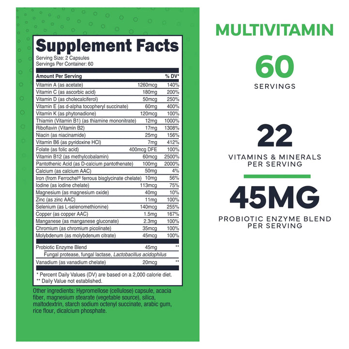 Cápsulas Multivitamínicas 1300 Mg Con Probióticos Y 22 Vitaminas