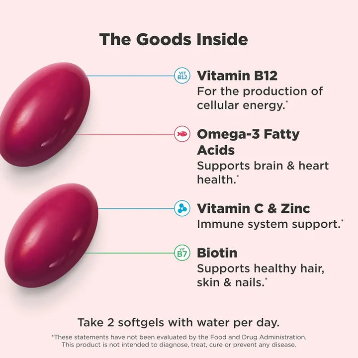 Tal vez te preocupe haber probado multitud de vitaminas sin resultados significativos. No estás sola, muchas mujeres experimentan lo mismo. Pero aquí es donde OLLY marca la diferencia con ingredientes de alta calidad como Omega-3 y B12, esenciales para el cerebro y la función ocular, además de antioxidantes que luchan contra los radicales libres, protegiendo tu organismo desde dentro.