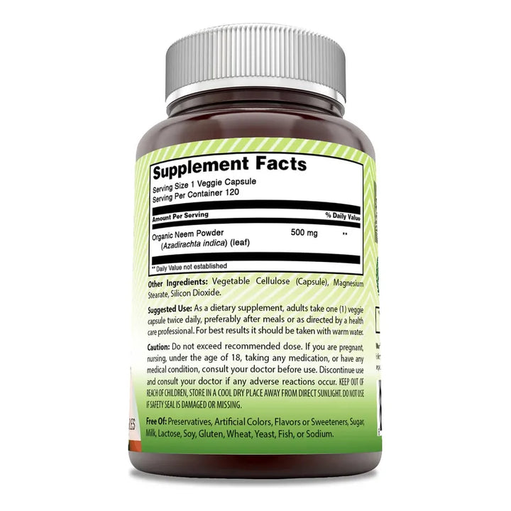 Capsulas Neem Natural 120 Unidades 500 Mg Suplemento Vegano