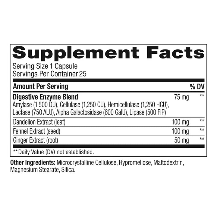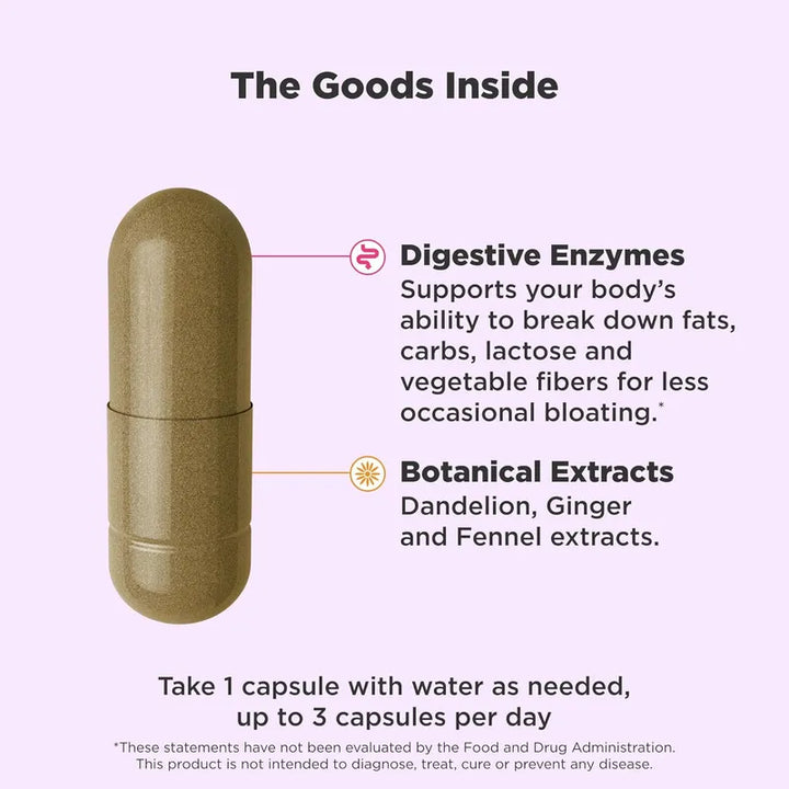 Experimenta el poder de una fórmula hecha a medida para las mujeres modernas. Gracias a su mezcla única de enzimas digestivas junto con extractos botánicos de jengibre, hinojo y diente de león, cada cápsula te acerca un paso más a la plenitud y el bienestar. ¡Dile adiós a la pesadez! 💪