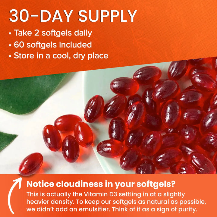 - 💪 Fuerza para tus huesos: La vitamina D3 fortalece tu sistema óseo y mejora tu energía.