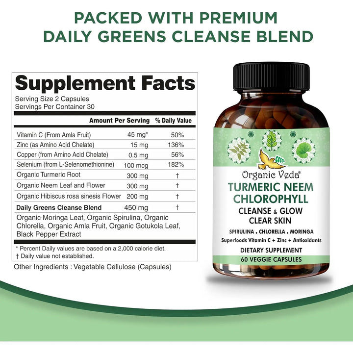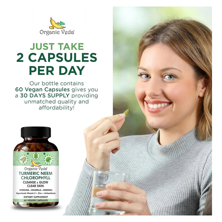 Capsulas Organic De Neem Y Curcuma Con Vitaminas Y Verdura Piel Clara Y Salud Intestinal