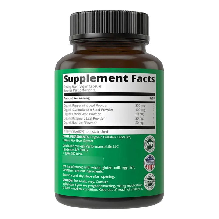 Cada ingrediente ha sido elegido no solo por su efectividad, sino también por su papel histórico en el alivio de problemas digestivos. Imagina tener en una cápsula la poderosa hoja de menta orgánica, el reconfortante espino amarillo y el benéfico hinojo, junto con otras hierbas increíbles que tu cuerpo agradecerá.
