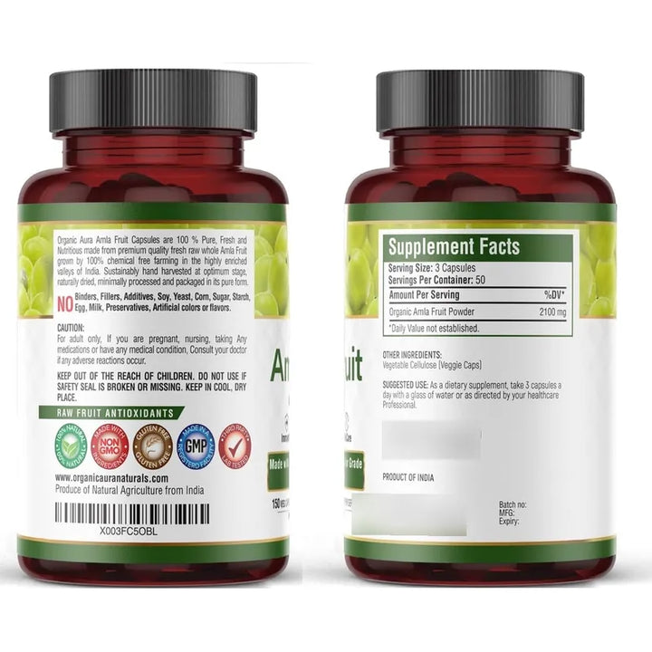 Cápsulas Orgánicas Amla 2100 Mg Suplemento De Vitamina C Natural