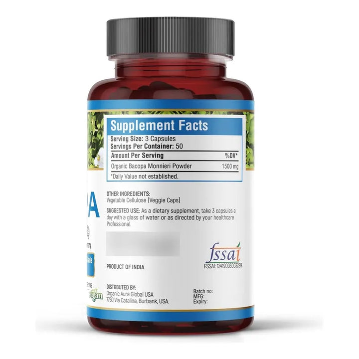 Capsulas Organicas Bacopa 1500mg 150 Unidades Vegetales