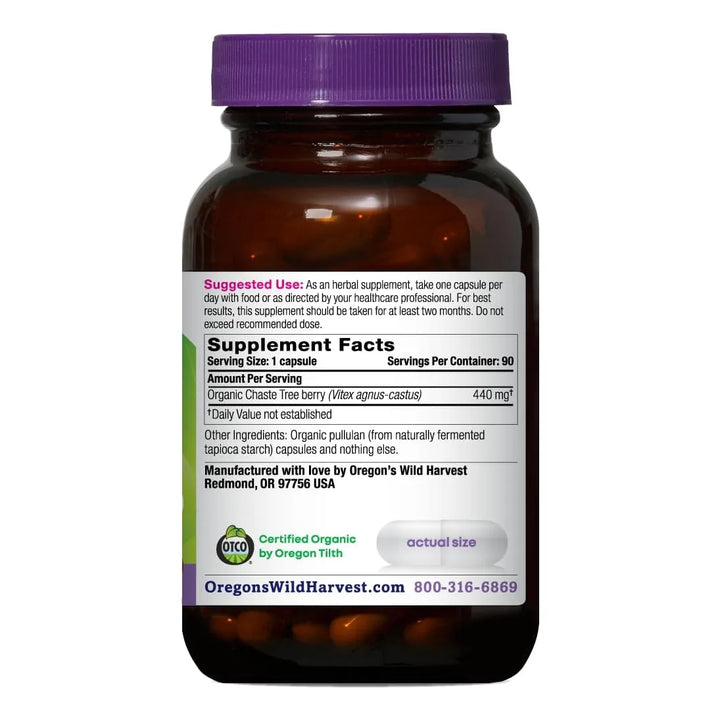 Cápsulas Orgánicas De Árbol Casto 90 Unidades Oregon's Wild Harvest Suplemento Natural