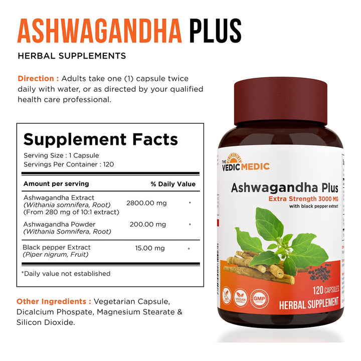 Cápsulas Orgánicas De Ashwagandha 3000 Mg Con Extracto De Pimienta Negra Para Alivio Del Estrés Y Energía