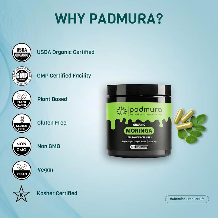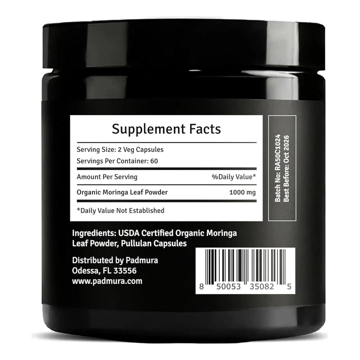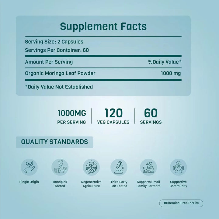 Cápsulas Orgánicas De Moringa Oleifera 1000 Mg Apoyo Inmunológico Vegano Sin Gluten