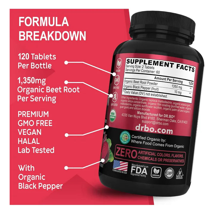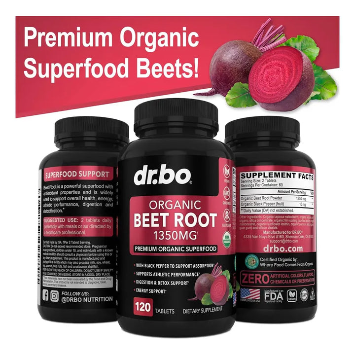Capsulas Organicas De Remolacha 1350 Mg Extracto En Polvo Mejora Circulacion