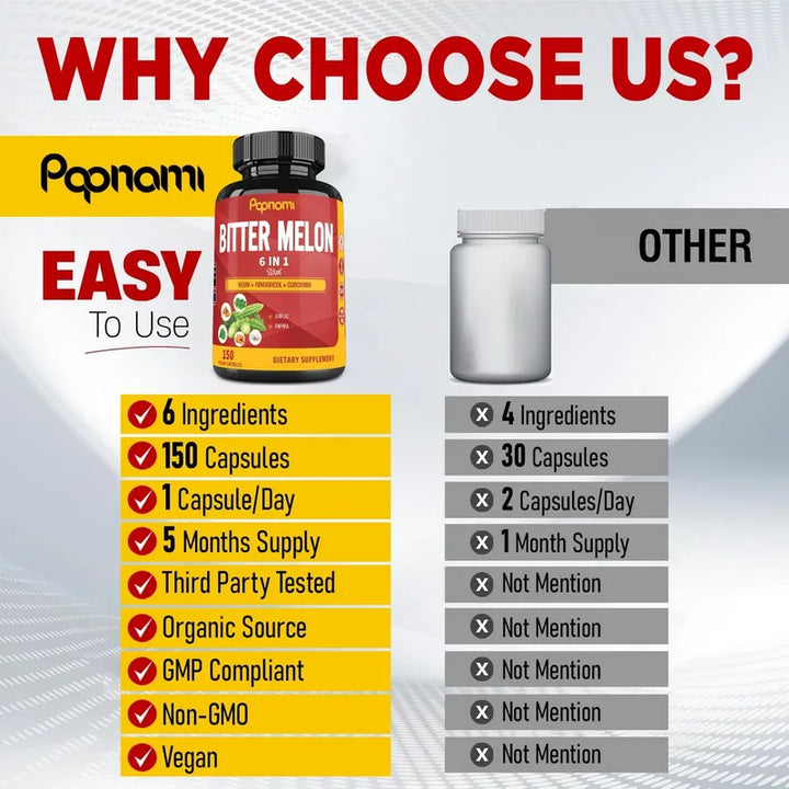 - Ingredientes Naturales: Hecho de extracto de melón amargo, neem, fenogreco, curcumina de cúrcuma, ajo y papaya para asegurar los mejores beneficios naturales. 🌿