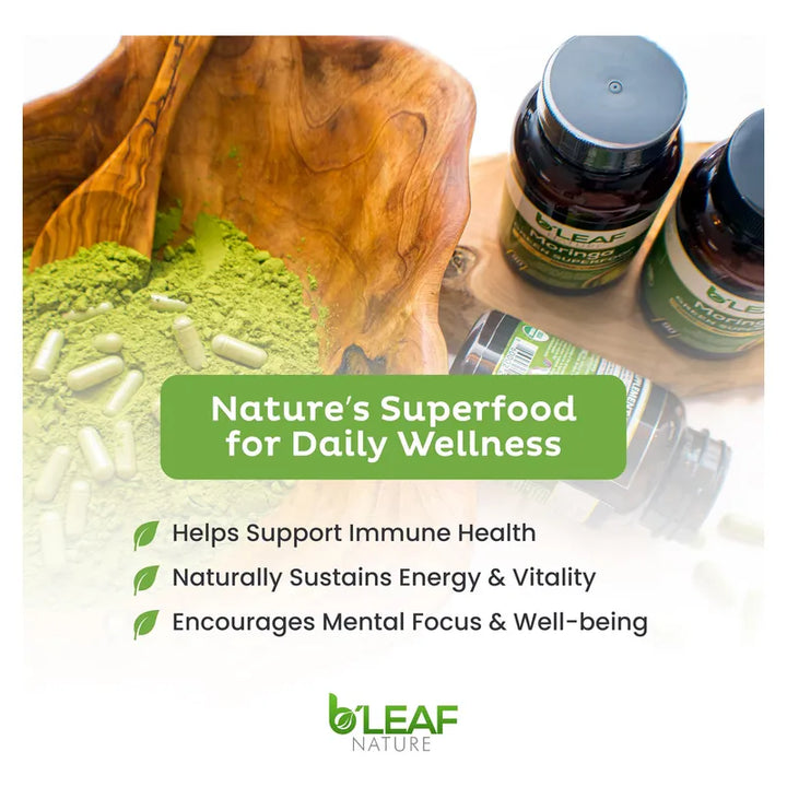 - 🔹 Alta Potencia: Cada cápsula contiene 1000 mg de moringa, maximizada para ofrecer resultados reales.