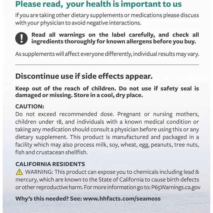 ✨ ¿Qué diferencia a nuestro producto? La calidad pura, sin rellenos innecesarios. Nos importa tu salud, por lo cual cada cápsula está libre de estearato de magnesio o dióxido de silicio. Simplemente una cápsula conveniente que preserva la autenticidad y pureza del musgo marino, asegurando que recibas solo lo mejor de la naturaleza.