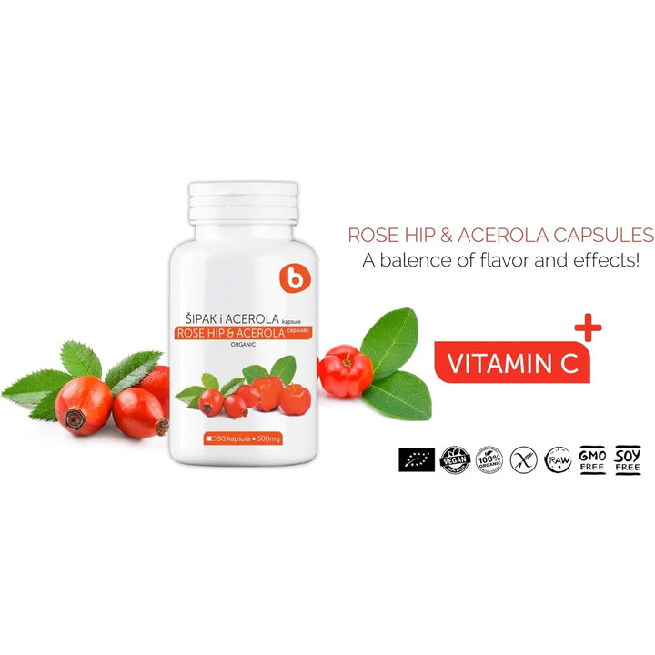 Capsulas Organicas Vitamina C 1000 Mg Rosa Mosqueta Acerola Vegano Sin Gluten