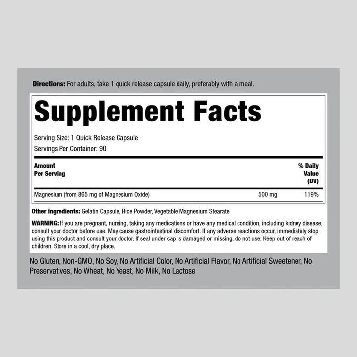 Capsulas Oxido De Magnesio 500 Mg 90 Unidades Suplemento Sin OMG