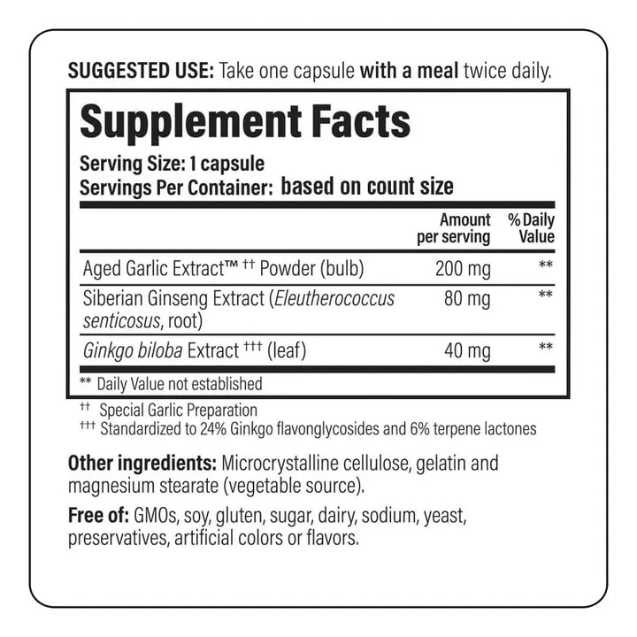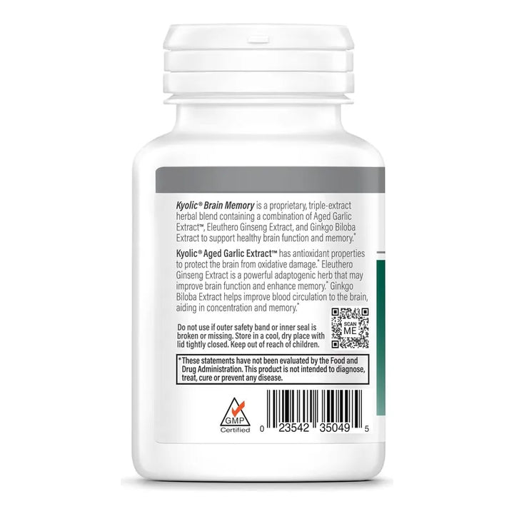 Kyolic combina una mezcla especial de ajo envejecido, ginseng y ginkgo biloba, todos ingredientes conocidos por sus beneficios comprobados en la mejora de la función cerebral. Estos elementos no solo ayudan a mejorar la memoria sino que también fomentan una concentración más aguda y sostenida.